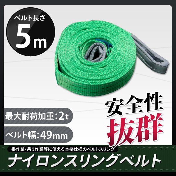 - 【送料無料】1本入り ナイロンスリングベルト 5m×2000kg×50mm 耐荷重2t★荷揚げ 吊り上げ 吊り下げ 玉掛け運搬に!