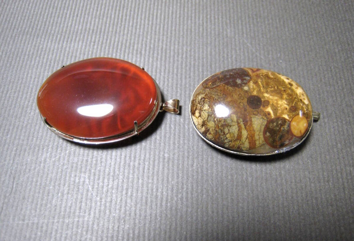 - 瑪瑙 唐草彫金 大理石 貴石 埋め込み飾り 帯留 2点 着物 帯飾り ブローチ兼用 レトロ 和装アクセサリー