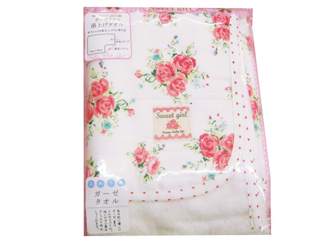 - 送料無料【新品】1点限り ガーゼ &パイル 【湯上げ タオル】sweet girl
