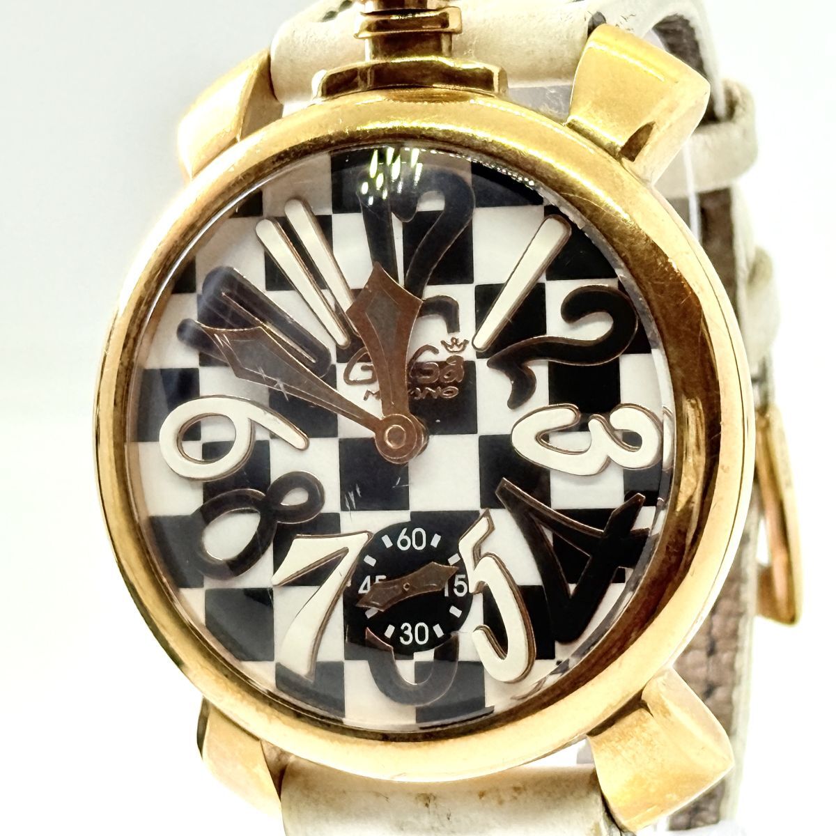 - K6115 GAGA MILANO ガガミラノ 限定299本 マヌアーレ48 手巻き チェス盤 GP 革 スモセコ 裏スケ 稼働品