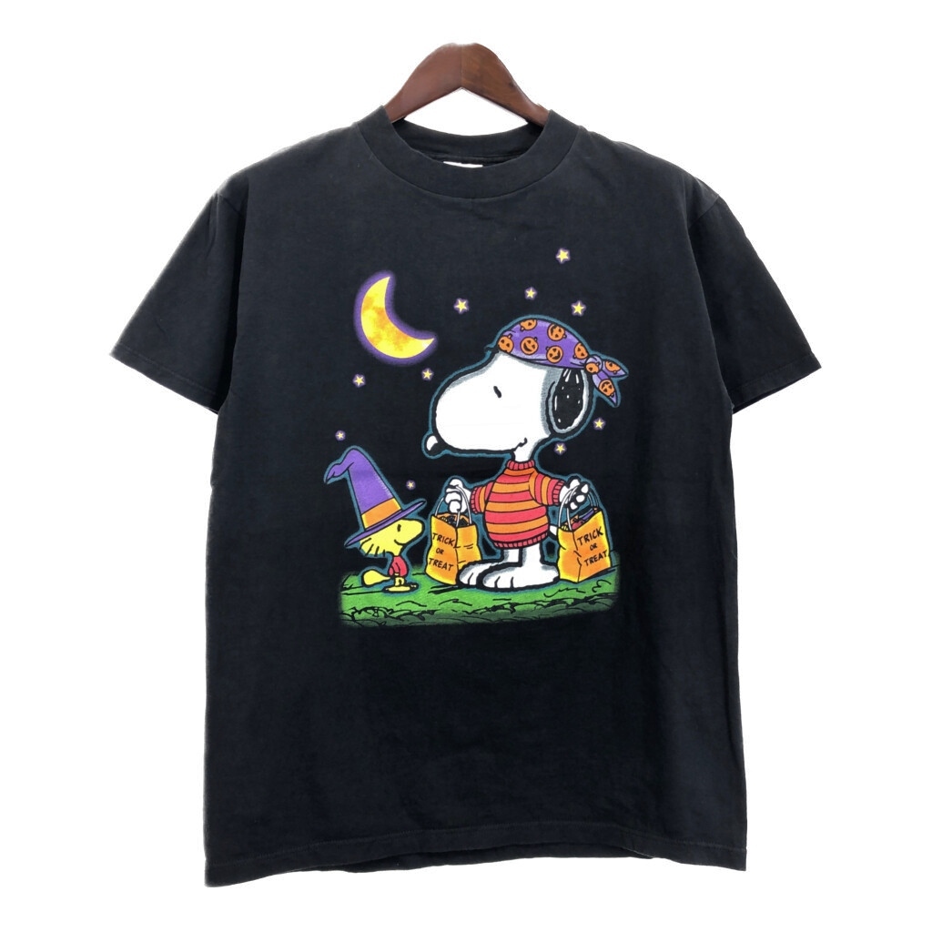 > 90年代 USA製 TULTEX PEANUTS スヌーピー ハロウィン 半袖Tシャツ キャラクター ブラック(メンズ LARGE)中古 古着 U0122