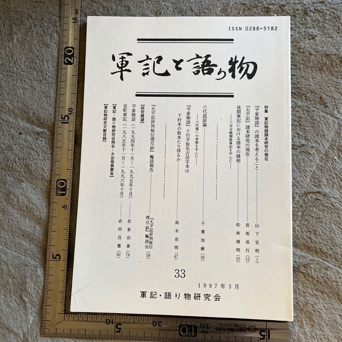- 『軍記と語り物』第33号/軍記・語り物研究会/1997年 特集・軍記物語諸本研究の現在 平家物語 太平記