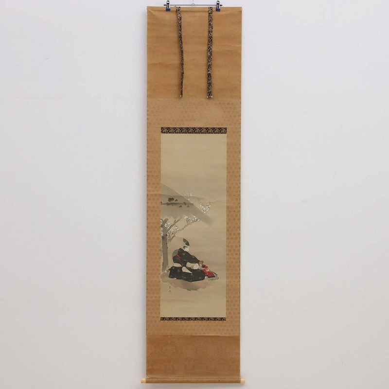 - 【真作】菊池容斎 掛軸 絹本 肉筆 彩色 人物 落款 印有 合箱 gh09-9985[TOM]