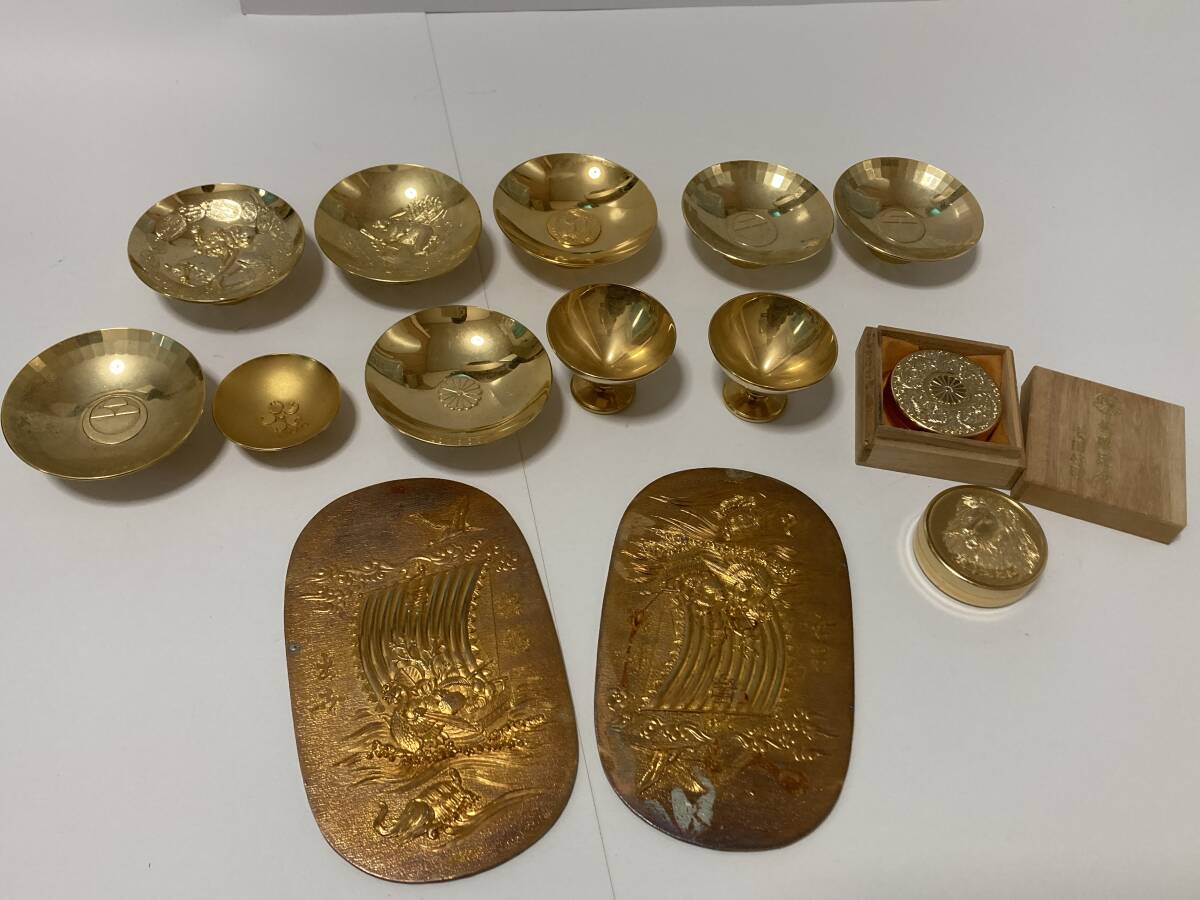 - 金杯 朱肉入れ 小判レプリカ 24KGP メッキ 置物 インテリア