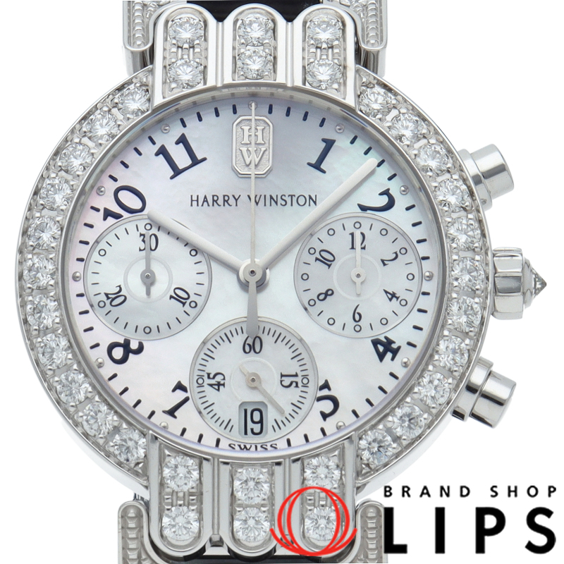 > ハリー・ウィンストン プルミエール クロノグラフ ダイヤベゼル 200UCQ32W/PREQCH32WW007 K18WG/革