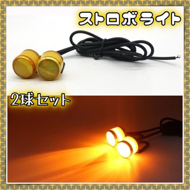 - LED ストロボ ライト 2球セット 黄色 イエロー アンバー フラッシュ 点滅 バックランプ ナンバー灯 12V 汎用 自動車 オートバイ 原付