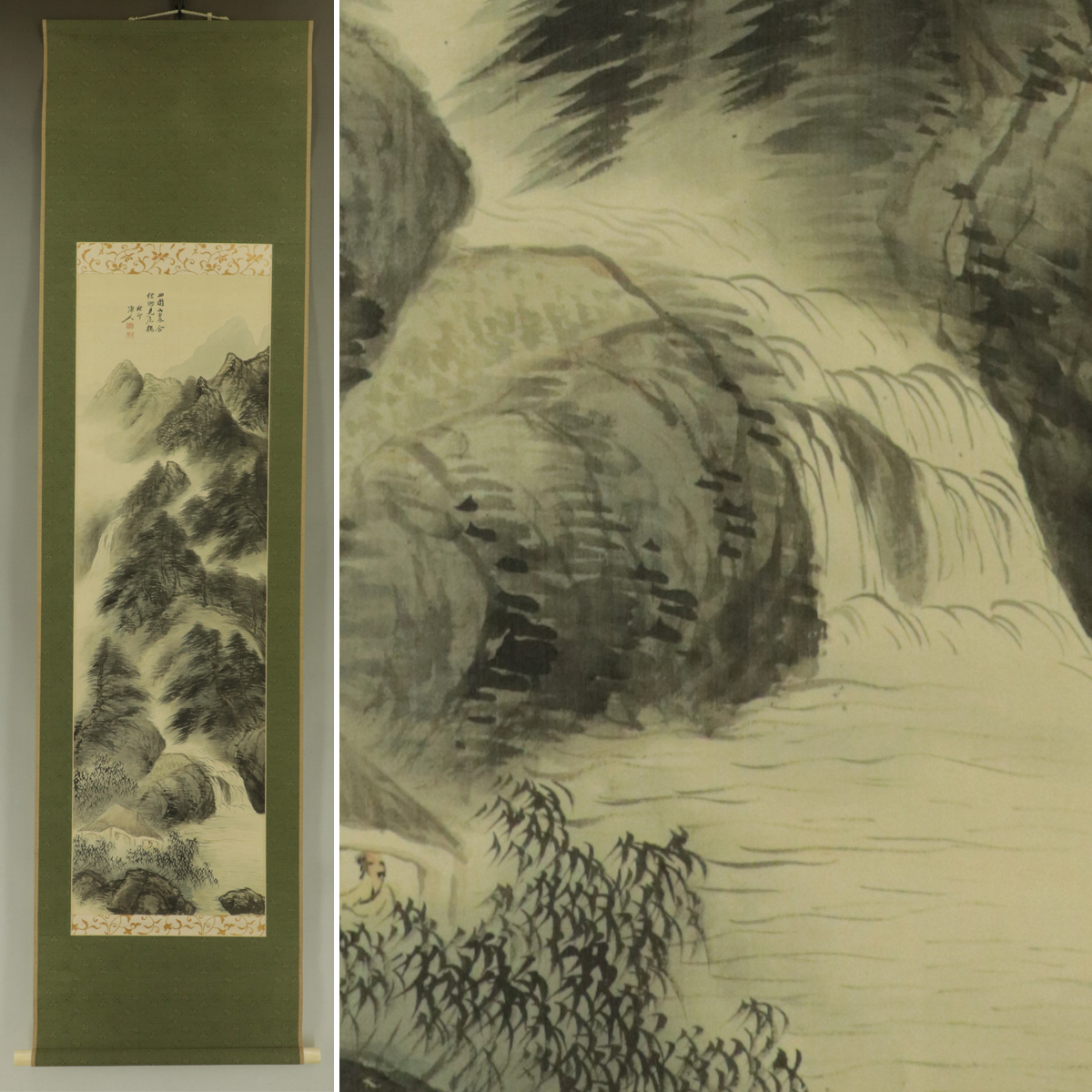 - 【模写】河野秋邨【四囲山翠】◆絹本◆合箱◆掛軸 s06038