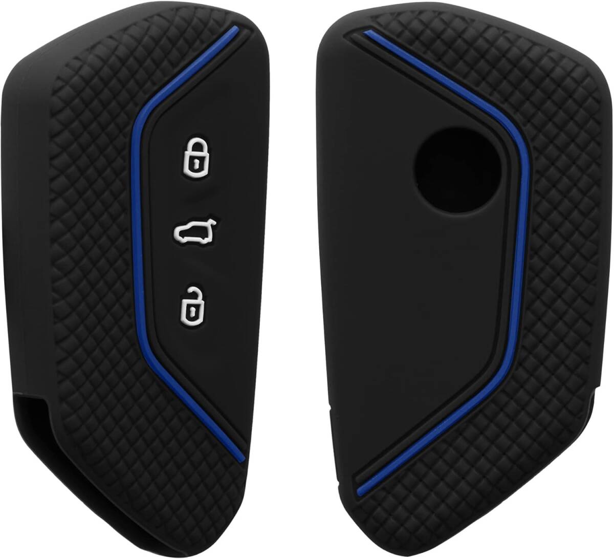> kwmobile キーカバー VW Golf 8 3-ボタン 車のキー対応 キーケース - 保護ケース 鍵ケース 車鍵 シリコン 黒色マット/青色
