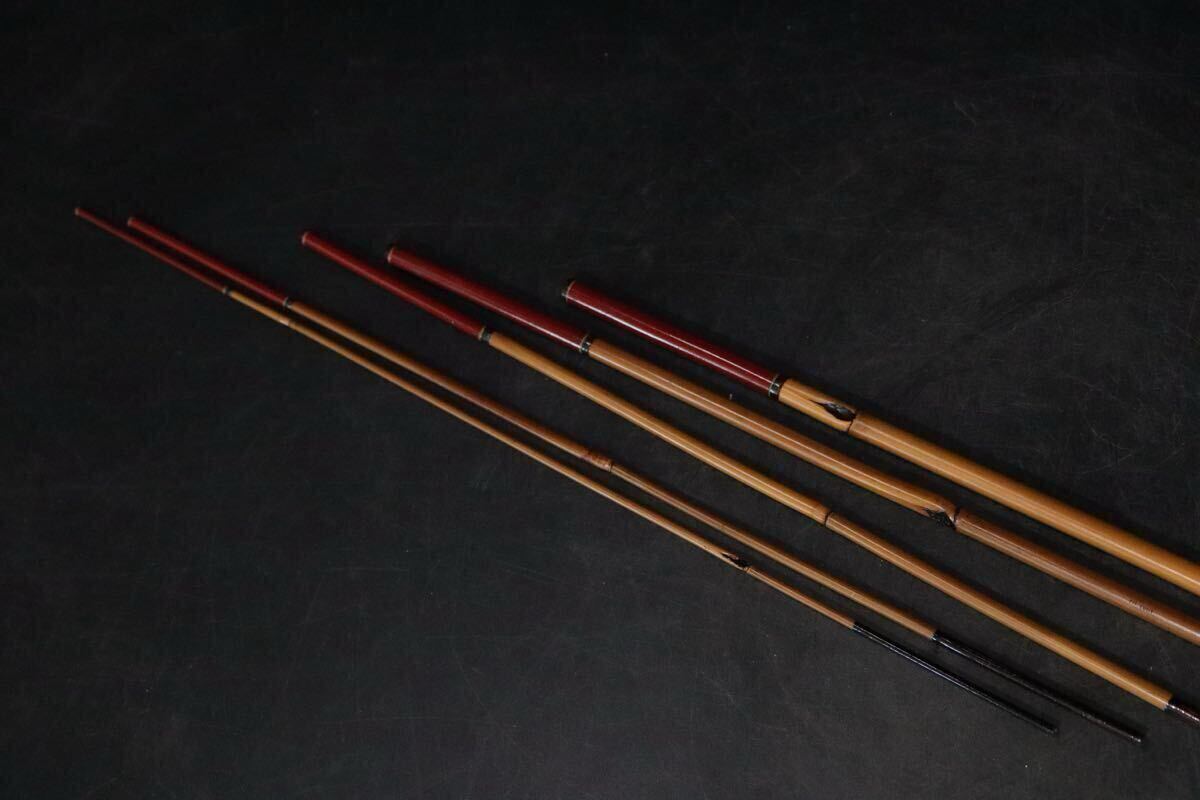 - 時代 古竹 竹製 釣竿 組立式 仕覆布 付 組立時全長約161cm / 中国美術 民藝 竹細工 竹竿 .B621