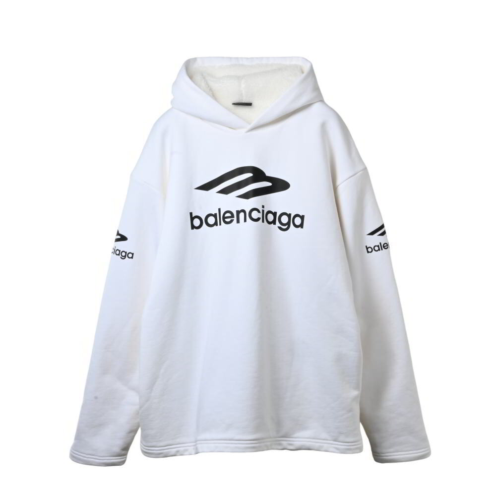 > BALENCIAGA 773685 ロゴプリント 裏起毛 プルオーバー パーカー L ホワイト バレンシアガ KL4BHPAC85