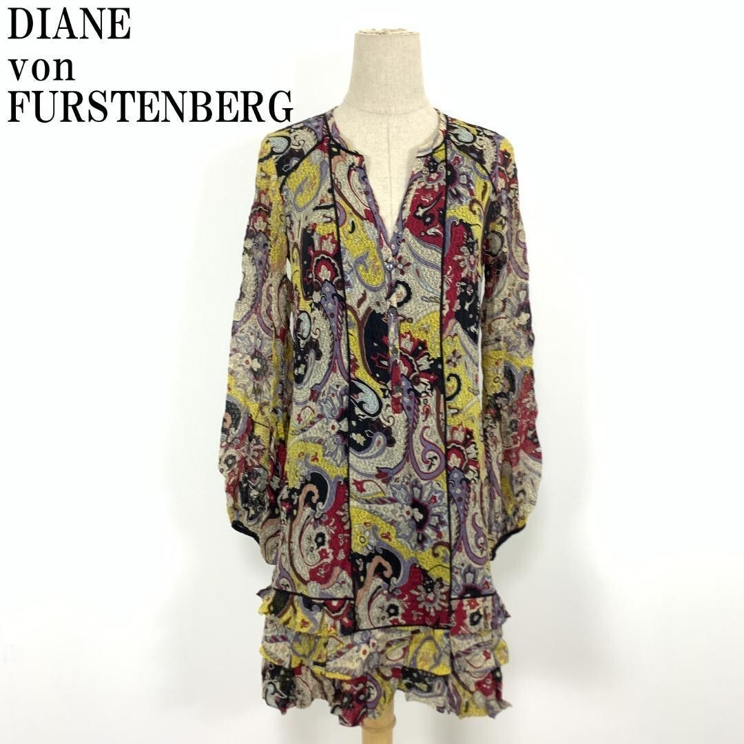 - LA6696 ダイアンフォンファステンバーグ シルク100% DIANE von FURSTENBERG ハーフボタン長袖ワンピース 2