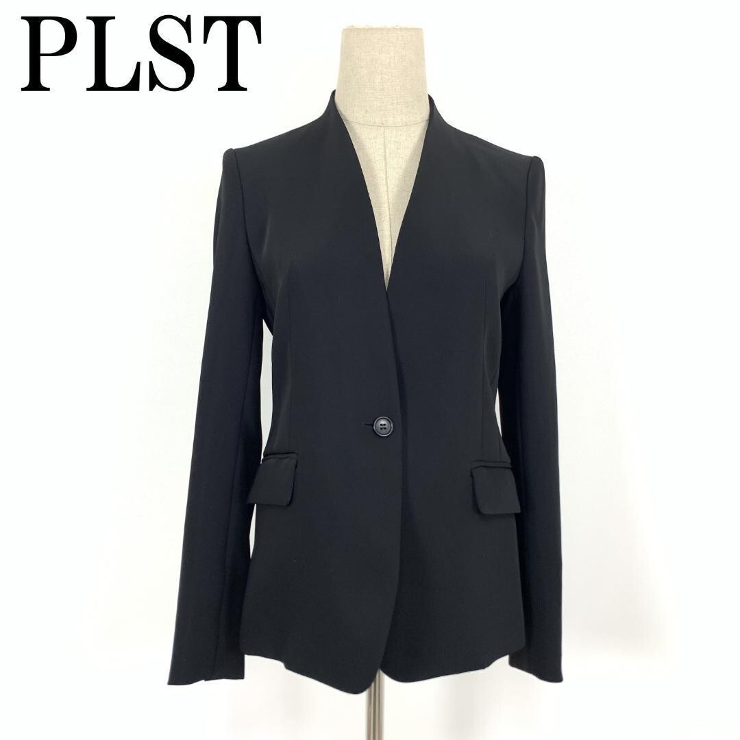 > LA6491 PLST プラステ ノーカラージャケット ポリエステルカジュアル ビジネス ポリエステル100% ポケット有 ブラックS