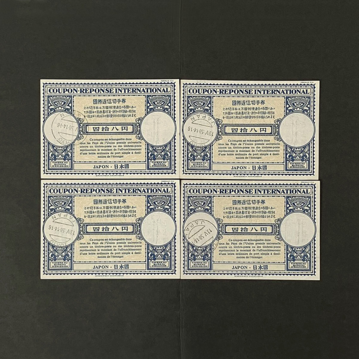 - 国際返信切手券 四拾八円 48円×4枚 未引換 旧券 1958 TOKYO JAPAN