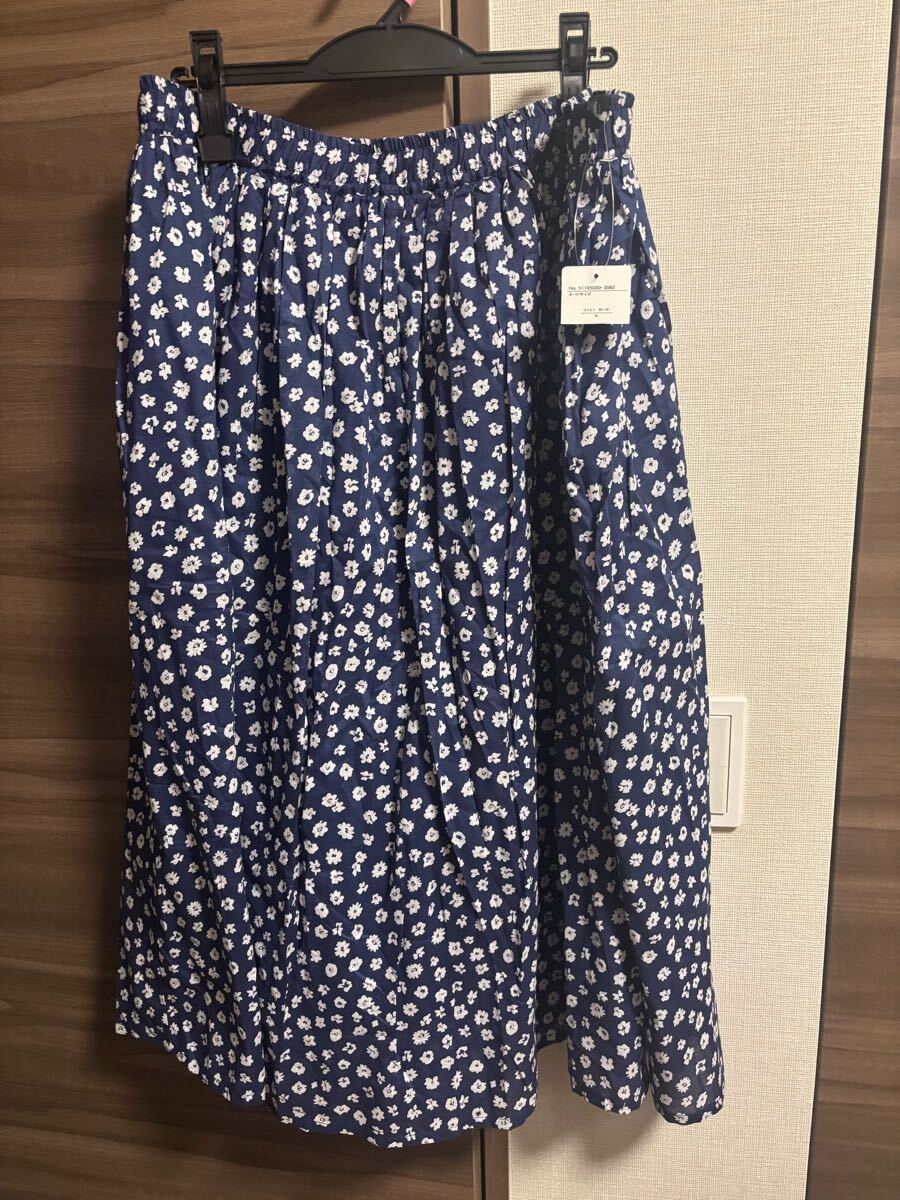 - 新品未使用タグ付き 4Lサイズ ネイビー 花柄 フレアスカート ウエスト総ゴムらくらく 即決あり