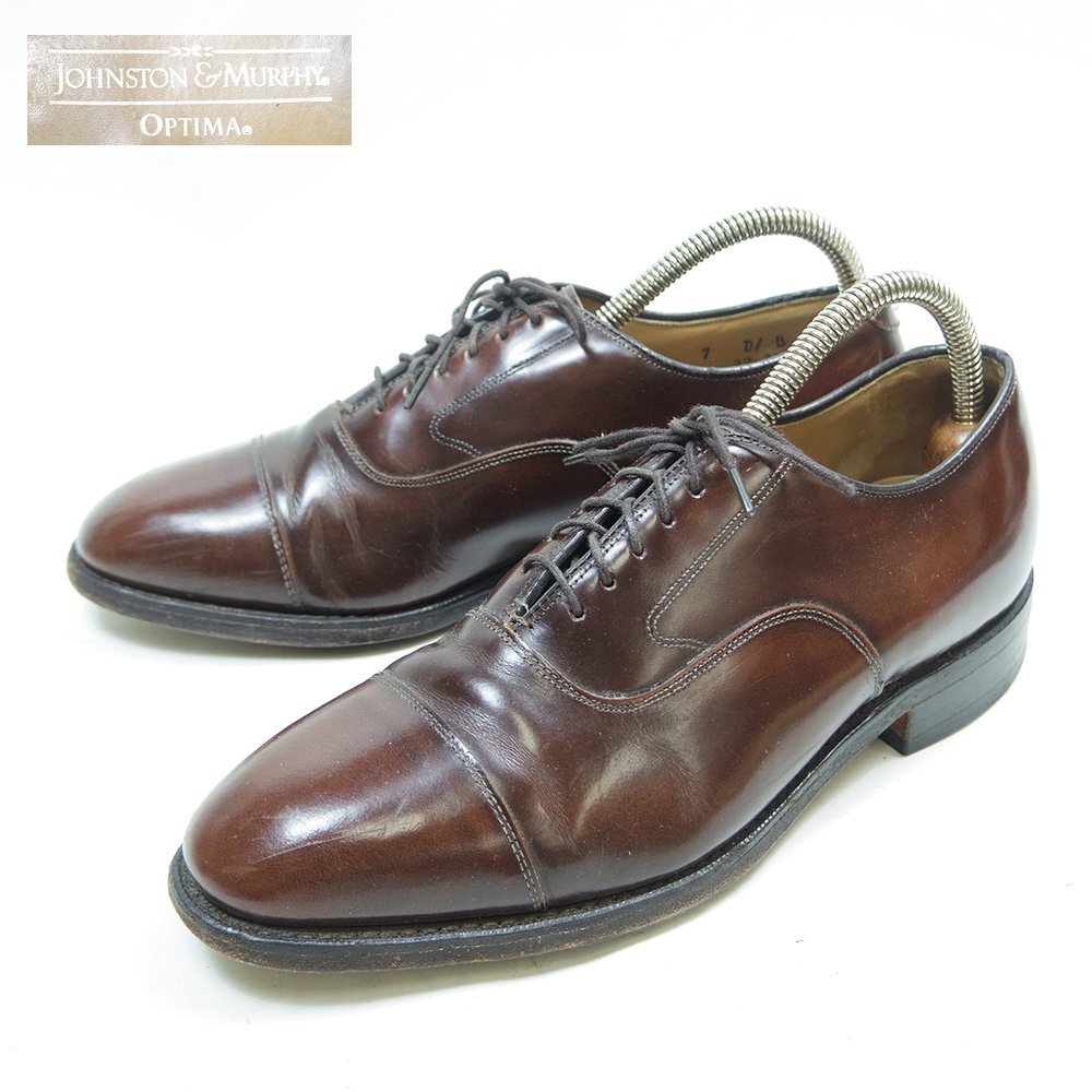 > 7D表記 25cm相当 Johnston&Murphy ジョンストン&マーフィー OPTIMA USA製 ストレートチップ 内羽根 ブラウン/25.7.11/P3156