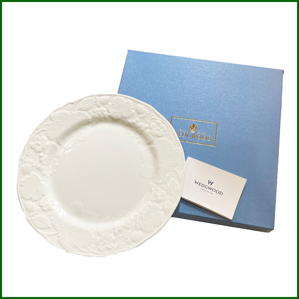 > 未使用保管品●WEDGWOOD/ウェッジウッド●大皿 ストロベリー&バイン プレート ホワイト 浮き彫り ボーンチャイナ 札幌