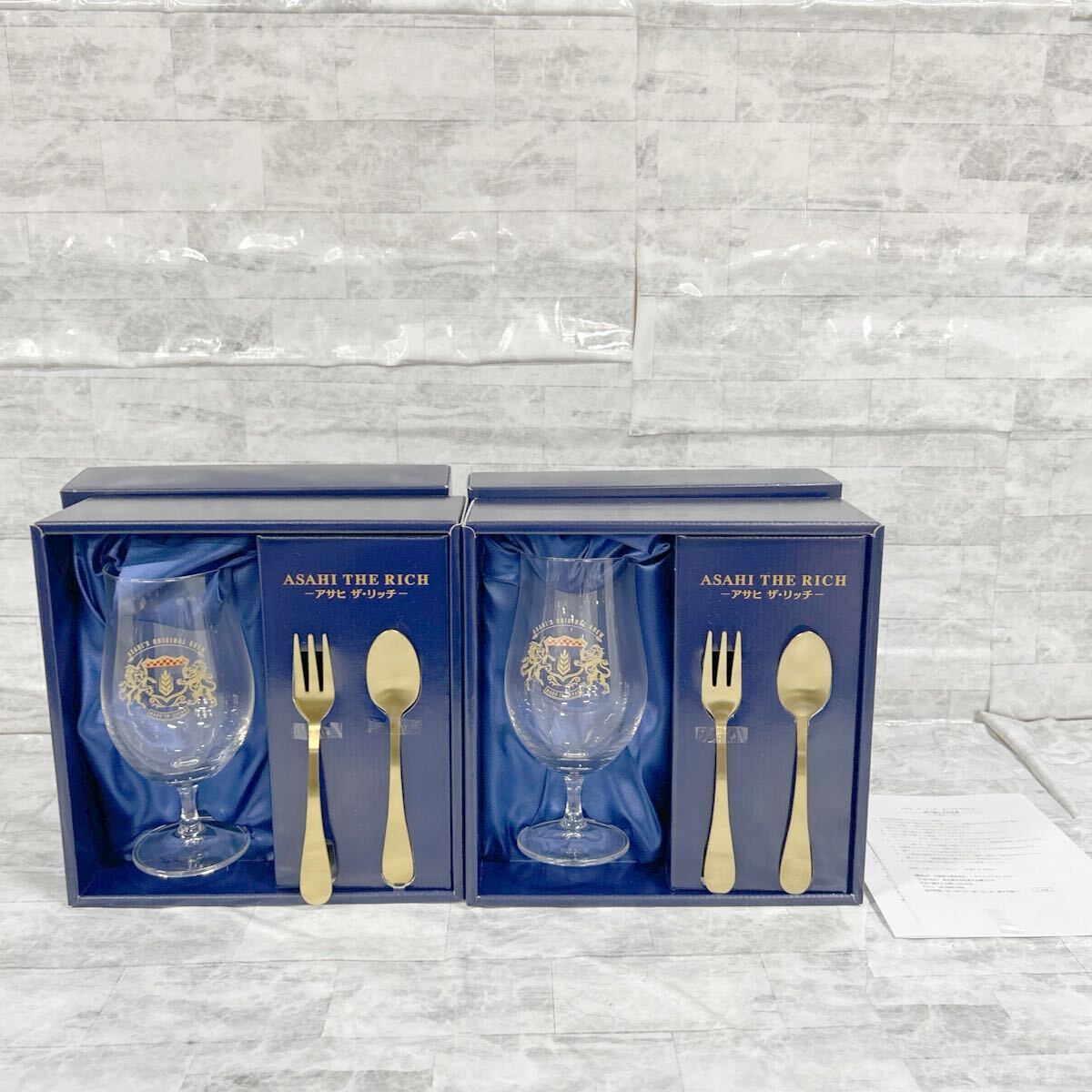 > SKAM-1656 ▲ ソーダグラス まとめ オリジナルグラス スプーン フォーク ステンレス アサヒザリッチ 未使用 箱付き
