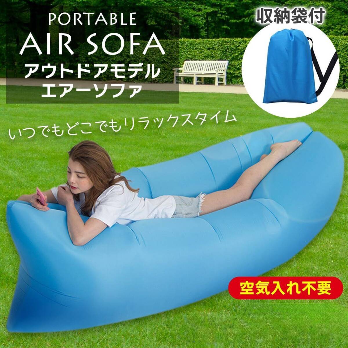 > 4色選択☆エアーソファー 耐荷重200kg 収納袋付き 空気入れ不要 軽量 コンパクト 防水 アウトドア プール キャンプ 登山 海水浴 屋内
