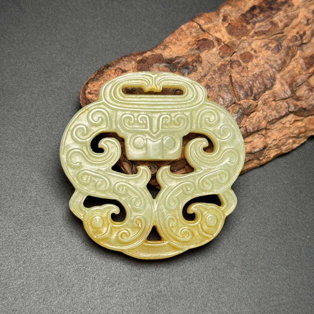 - 蔵友旧蔵出 和田玉製 細密彫 福壽如意 獣面玉佩 希少珍品 貴重品 置物 古賞物 中国古玩 中国古美術品