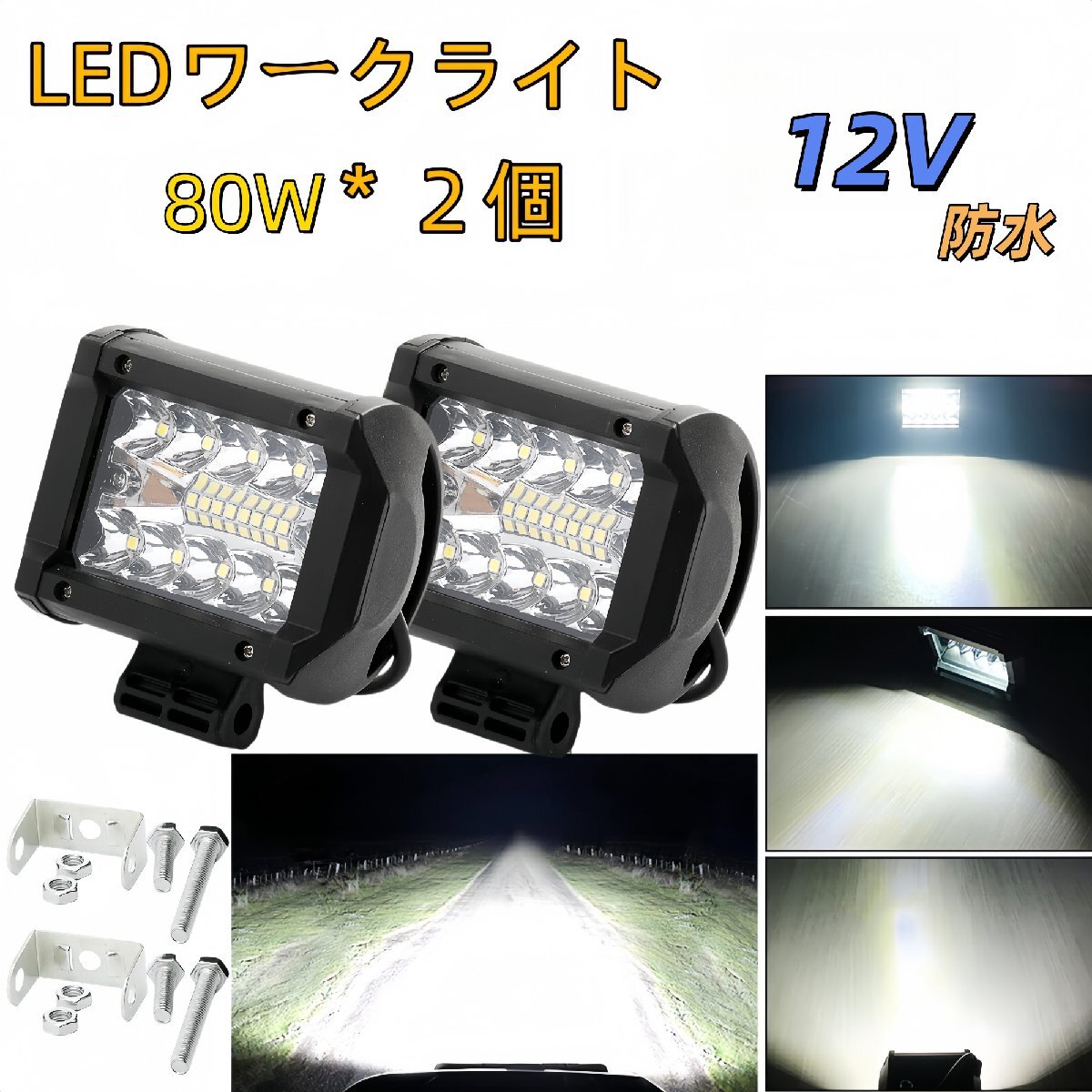 - ワークライト led 作業灯 フォグランプ ダンプ トラック スポットライト 投光器 12v 80w 8個 補助灯 車幅灯 ジムニー 照明