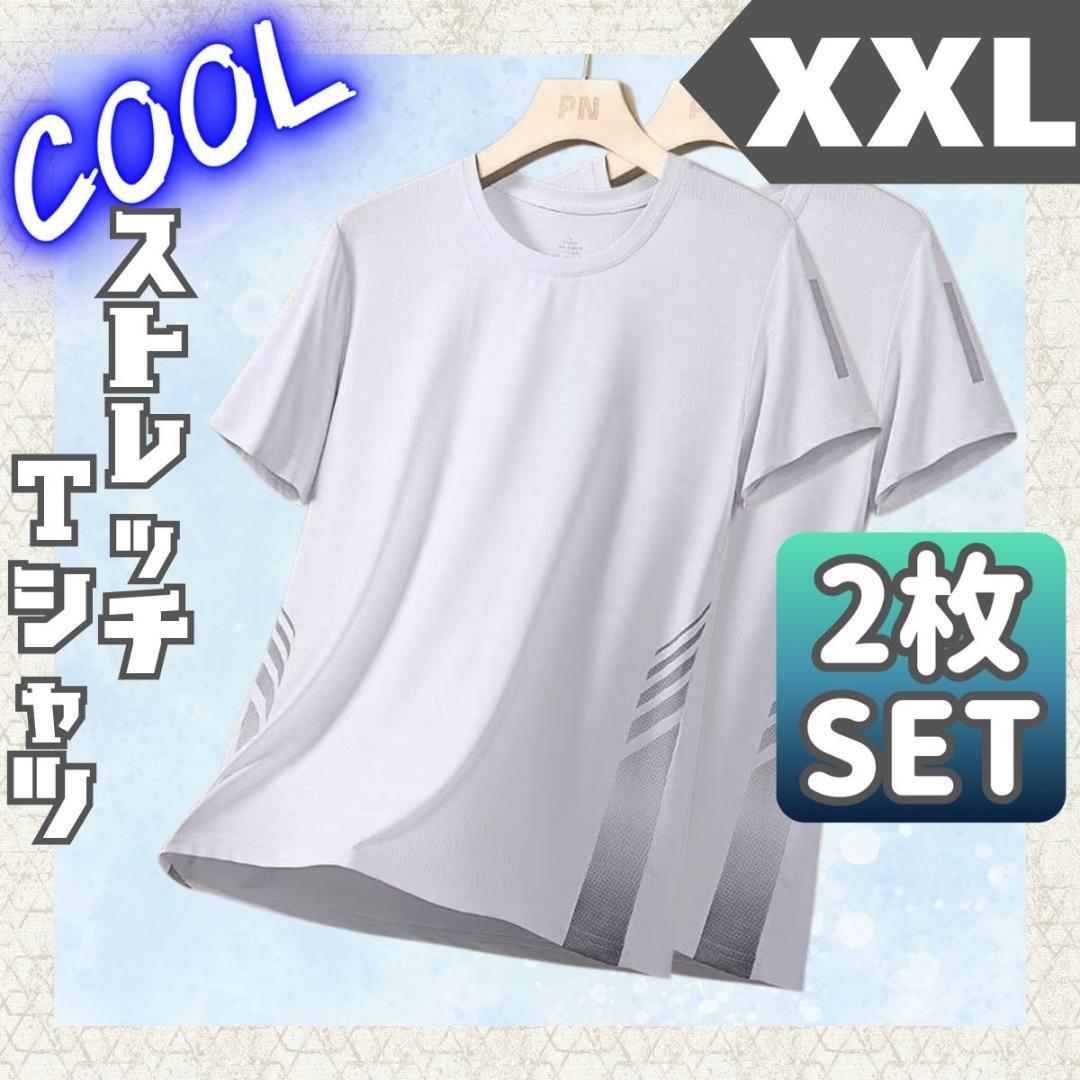 - 吸汗 速乾 ストレッチ Tシャツ XXL お得な2枚セット クルーネック 接触冷感 ホワイト