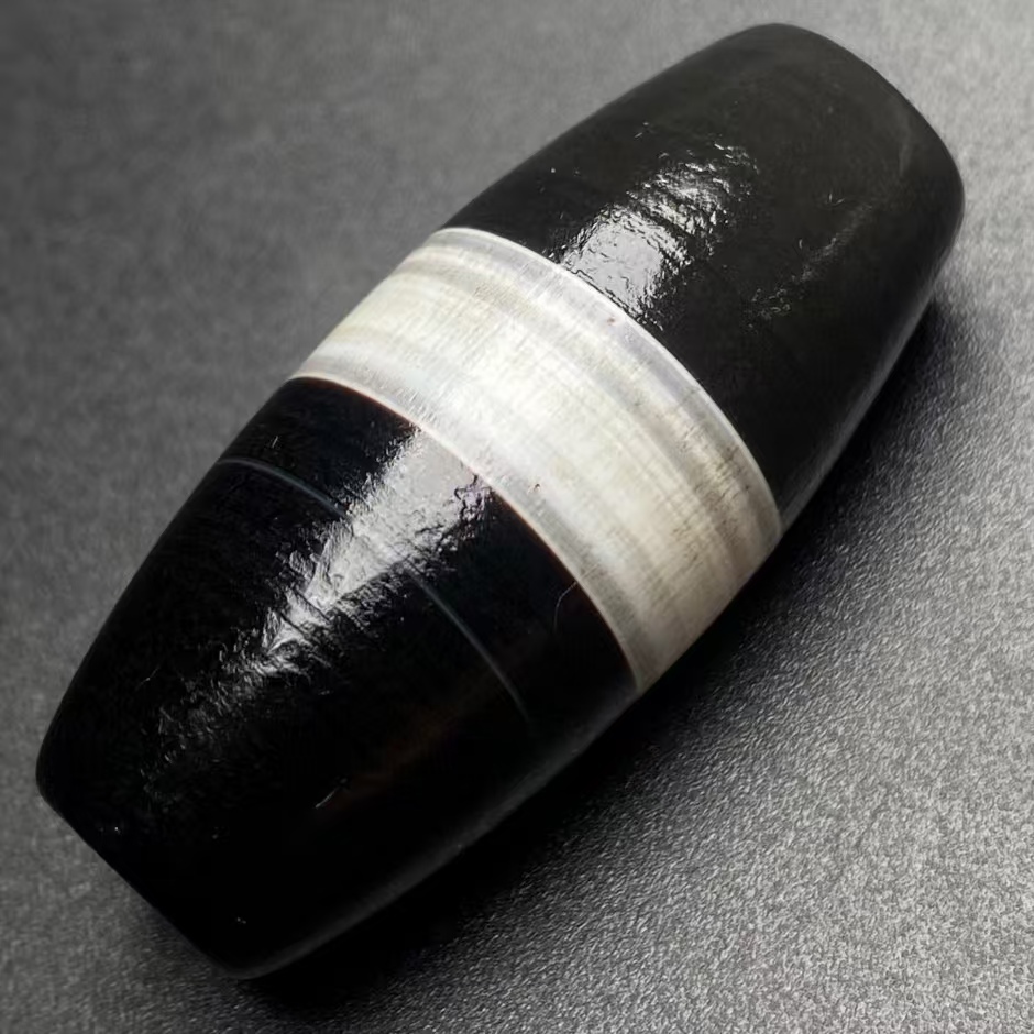 > 天珠 秘藏 清代 チベットの老天珠 高油老料 【一線の天珠 】 裝身具 骨董品 風水 開運 辟邪 吊墜 古賞物 包漿渾厚7.13