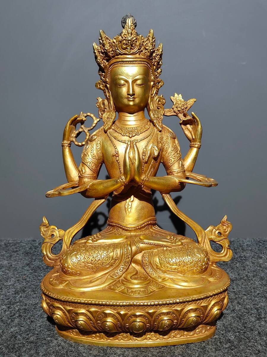 - ▽鴻▽ 銅製 塗金 四臂觀音像 仏像 宗教 仏教古美術 供養品 古賞物 古董品 時代物 稀少珍品 中国古玩 中国古美術