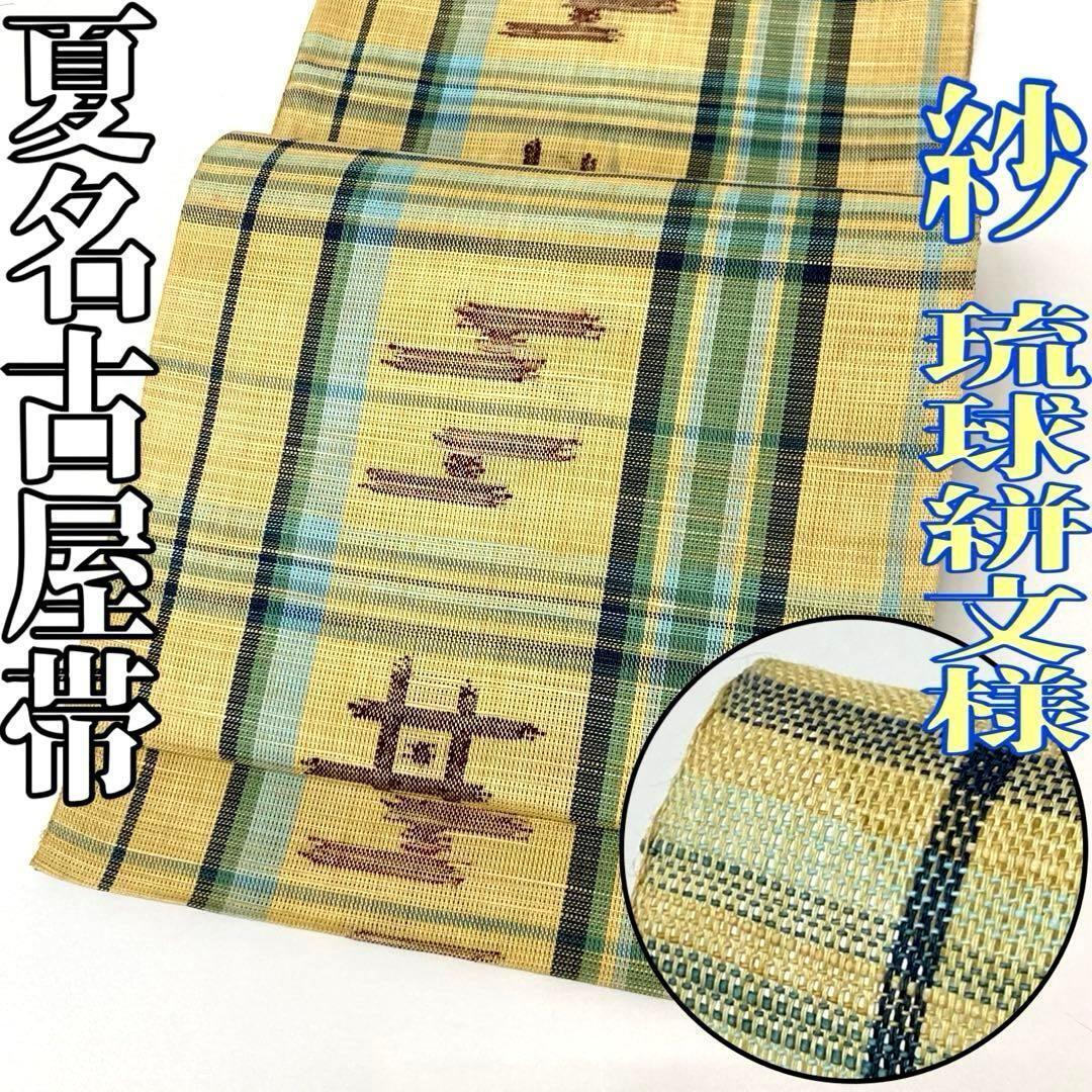 - 【着物と帯 時流】SN25775◆正絹 八寸夏名古屋帯◆紗 琉球絣文様 美品