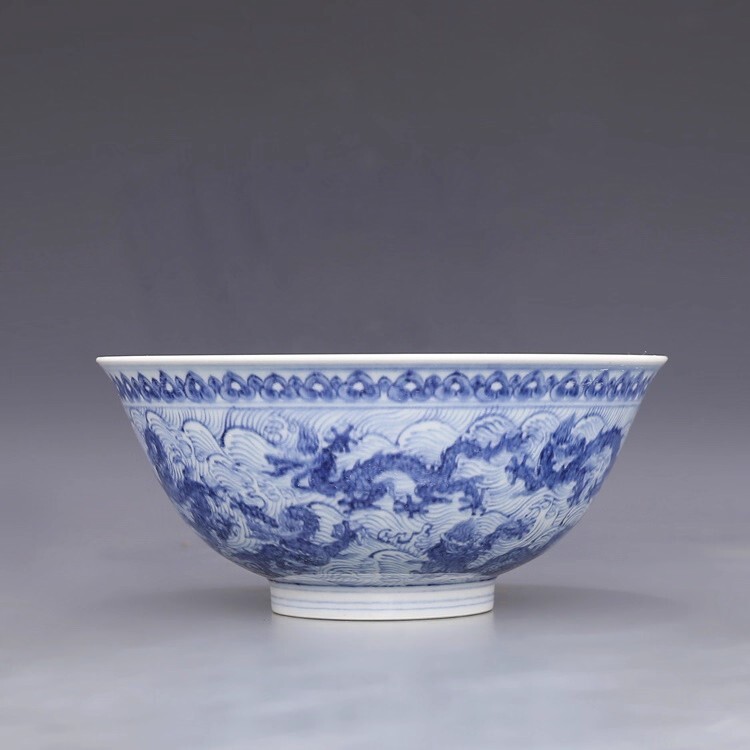 - AD30■中国古玩 唐物 大明成化年制款 青花染付海水九龍紋大碗・大鉢■