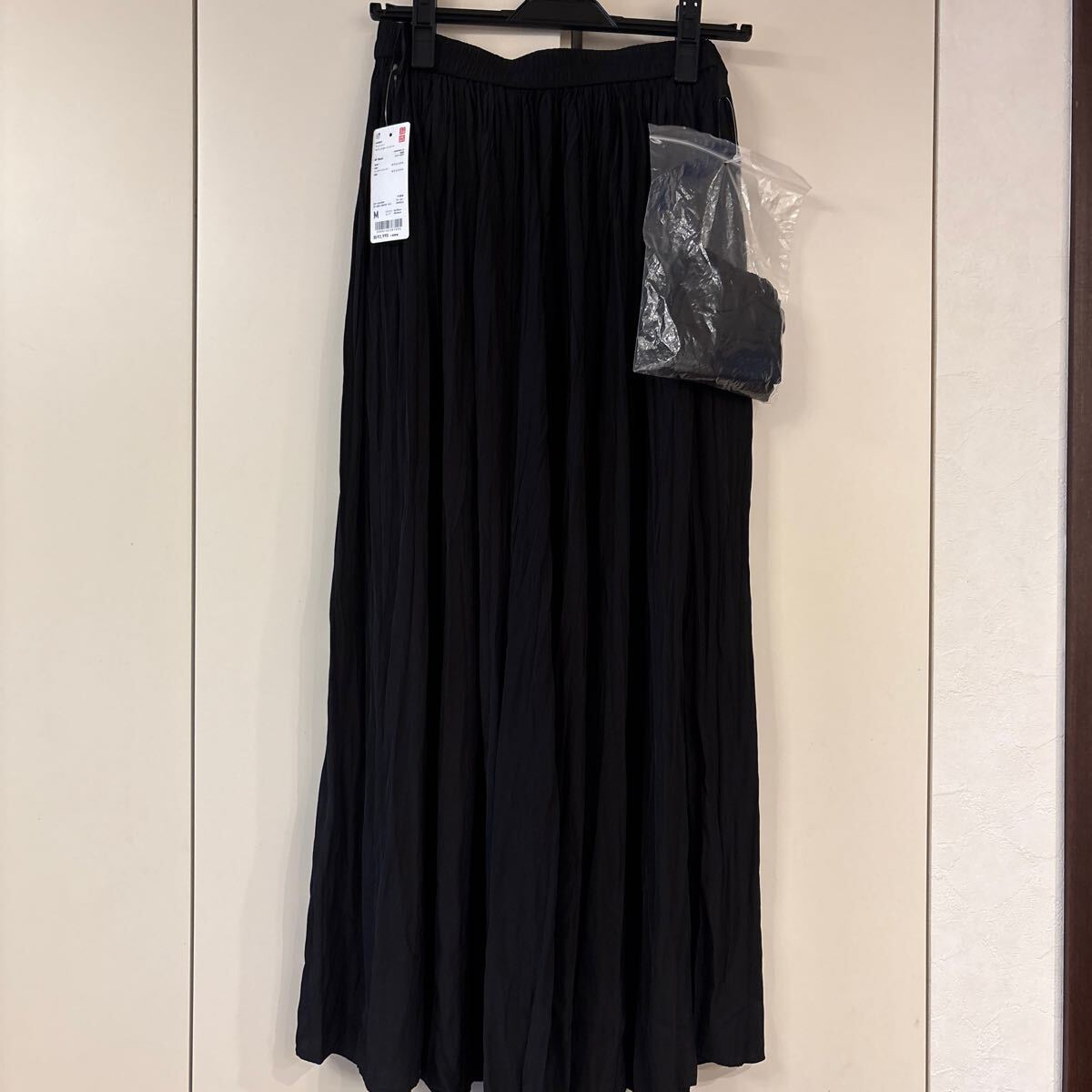- ★新品★ユニクロ ワッシャーサテンスカートパンツ 定価3,280円 M 黒 ギャザー 兼 WOMEN ワイドパンツ ガウチョ プリーツ サテン