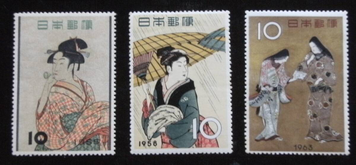 - 切手趣味週間1955年、1958年、1963年★未使用3種