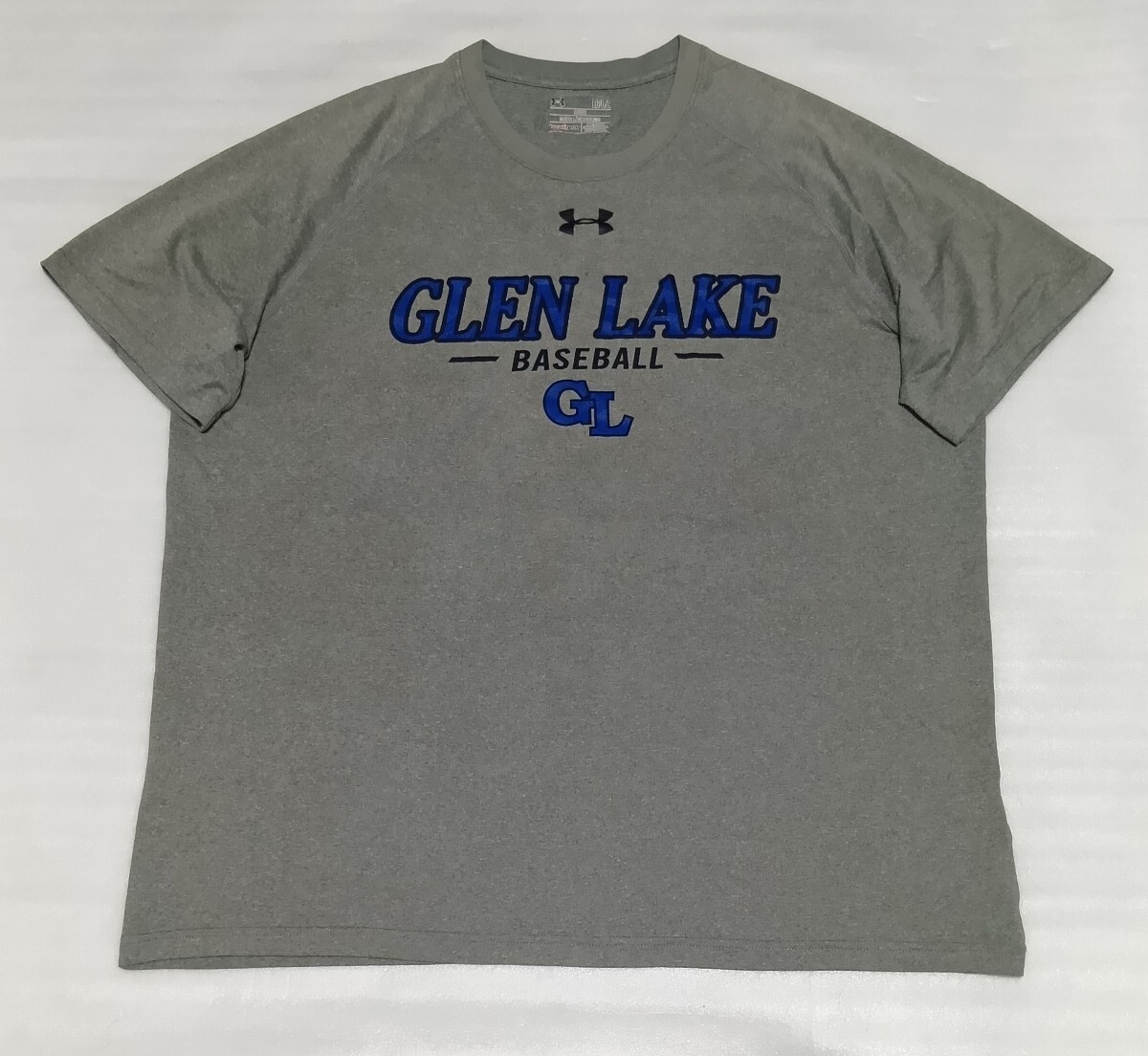 > ☆UNDER ARMOUR TEEサイズL半袖Tシャツ ベースボールLOOSEスポーツHEATGEARストレッチGLAYグレイGLEN LAKEブルー青ティー アンダーアーマー