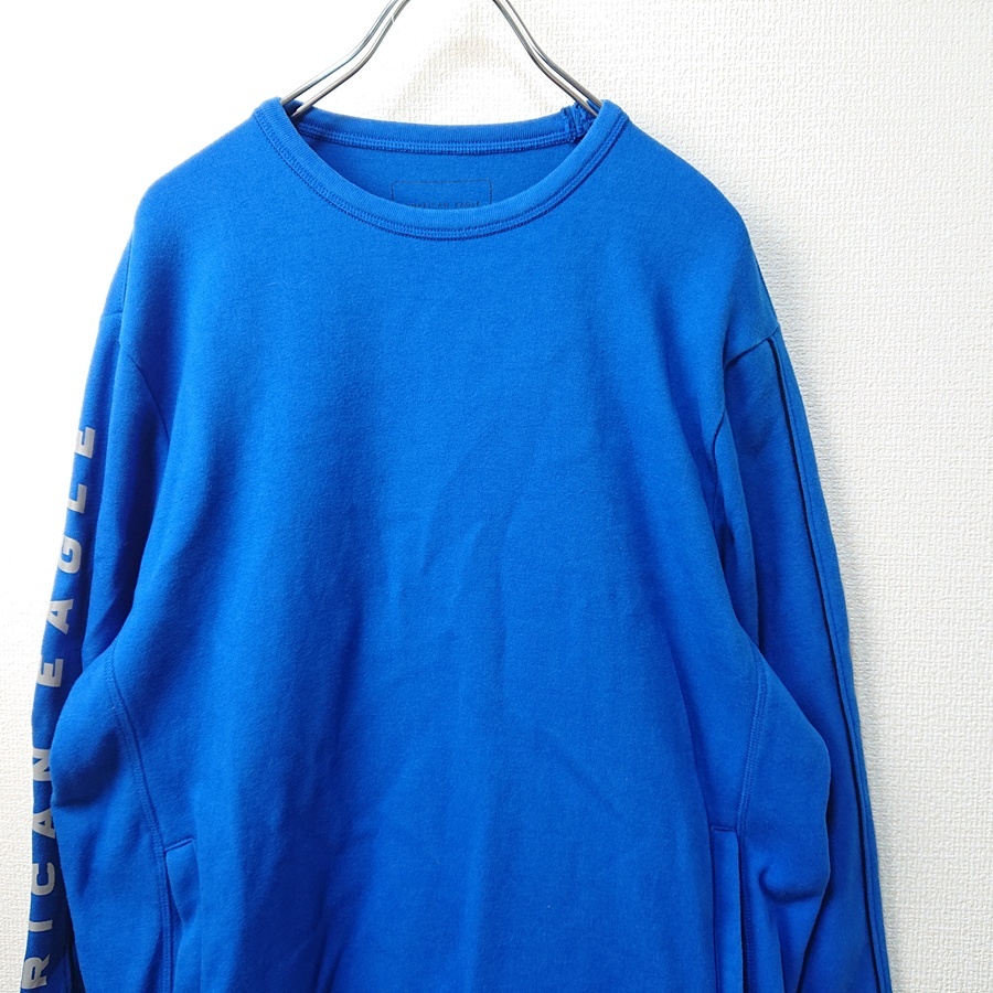 - AMERICAN EAGLE アメリカンイーグル サイドポケット スウェット トレーナー 袖ロゴ ブルー 青 sizeM 美品