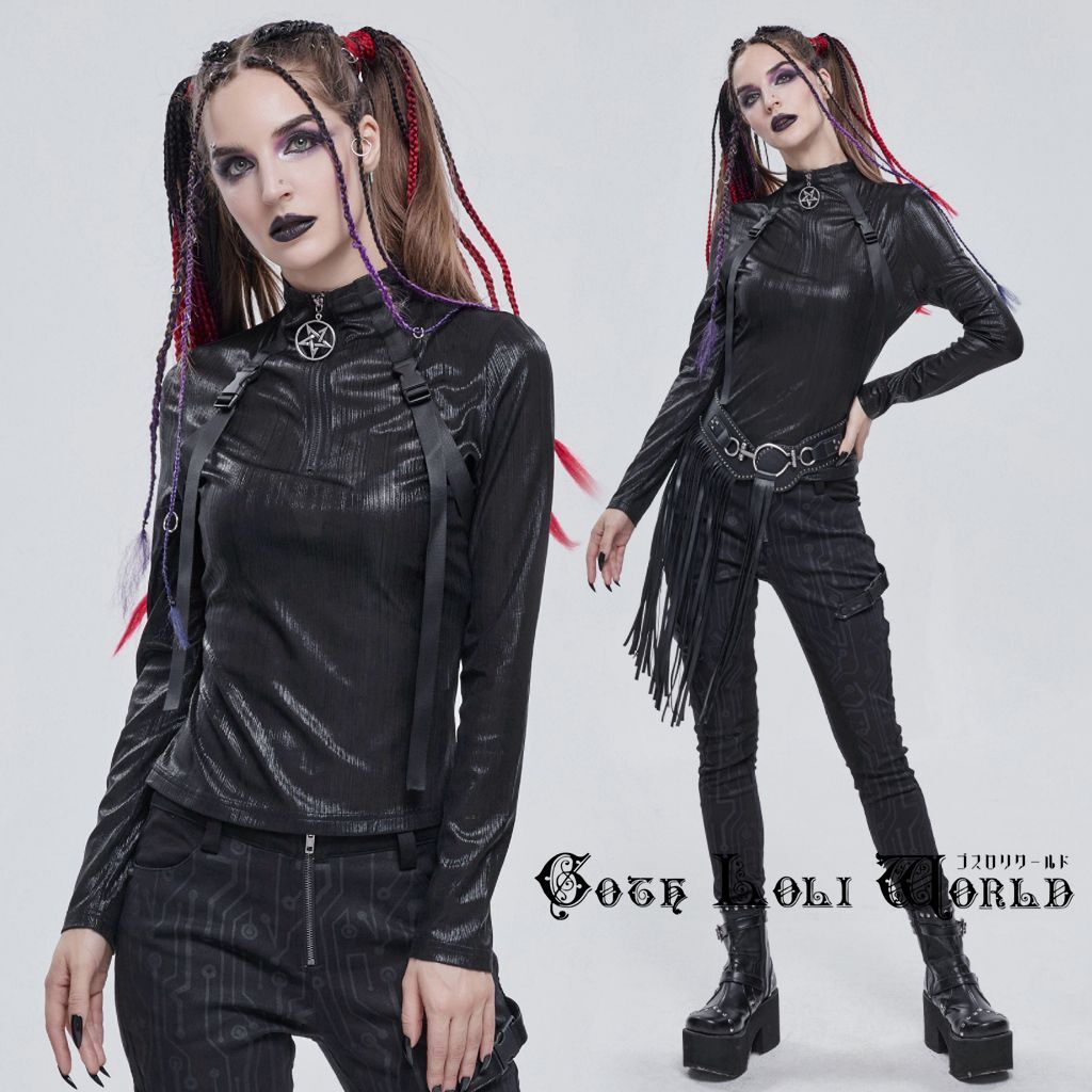 > TT179-S ゴシックファッション ハイネックダブルベルトハーネス風 カットソー ゴスロリワールド ゴシック パンク ロック ビジュアル系 V系