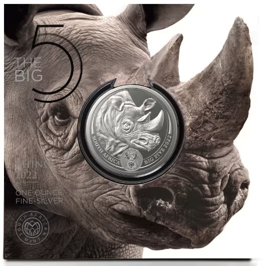 - [保証書・カプセル付き] 2022年 (新品) 南アフリカ「ライノ・犀」純銀 1オンス 銀貨
