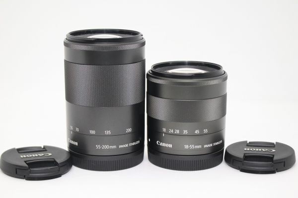 > ■レンズ2本セット■キヤノン CANON EF-M 18-55mm F3.5-5.6 IS STM+ EF-M 55-200mm F4.5-6.3 IS STM 交換レンズ2本セット #Z5559