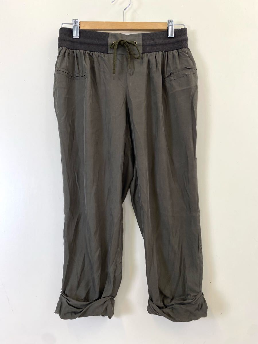 > ★ 滑らかな光沢感* PASSIONE クロップド パンツ オリーブ サイズ38 ◆ ウエストゴム キュプラ ジョガーパンツ パシオーネ ◆W21 もMSU1-10