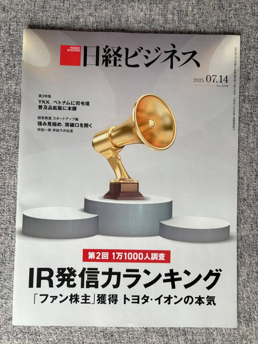 > ★日経ビジネス 第2回 1万1000人調査 IR発信力 ランキング ファン株主獲得 トヨタ イオン ホンダジェット YKK ベトナムに司令塔 2025,7.14