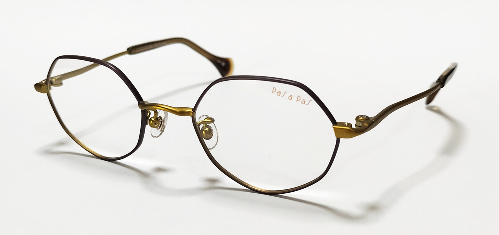 > Pas a Pas パサパ 2531 WY ワイルドイエロー(マットイエロー/ブラウン) クラウン多角形 チタン メガネフレーム