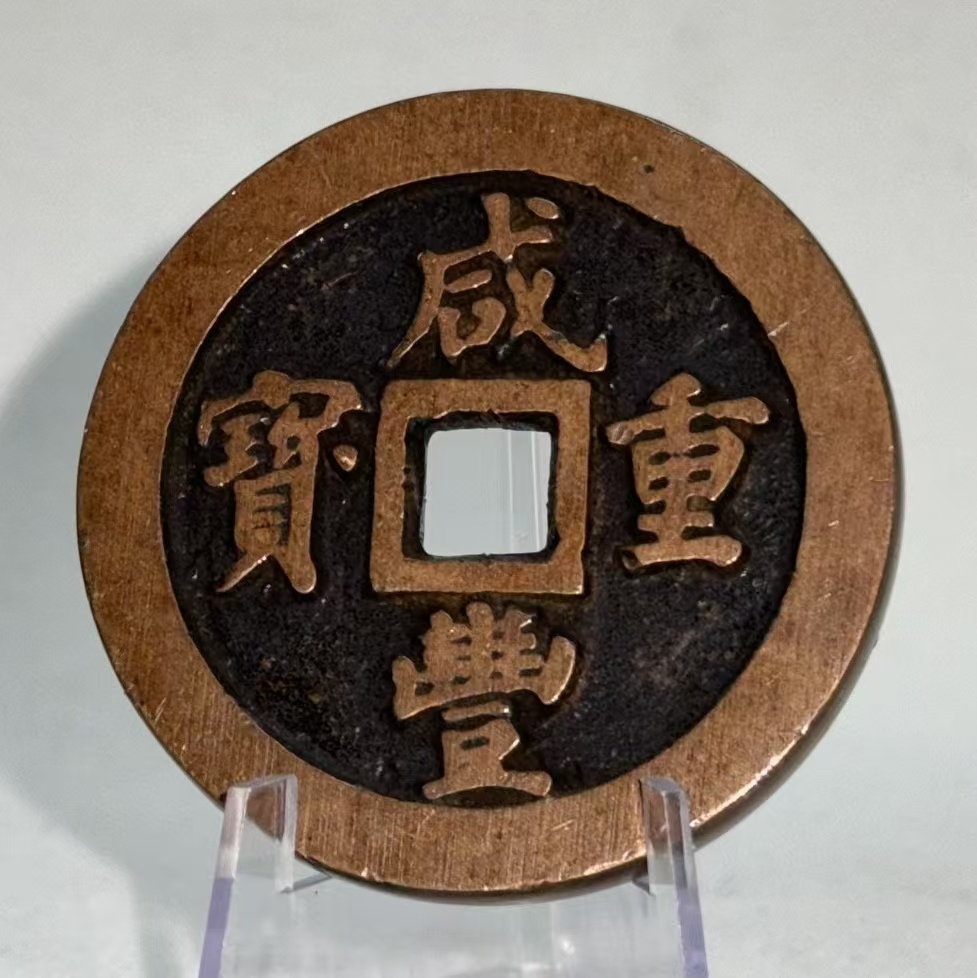 - 古錢 清代 銅幣 銅錢 【 55 mm赤銅計重50・咸豊重宝貨幣 50 2両 5銭 】 銅製 唐物 中国古錢 收蔵品 中国古玩 中國古錢 骨董品 7.15