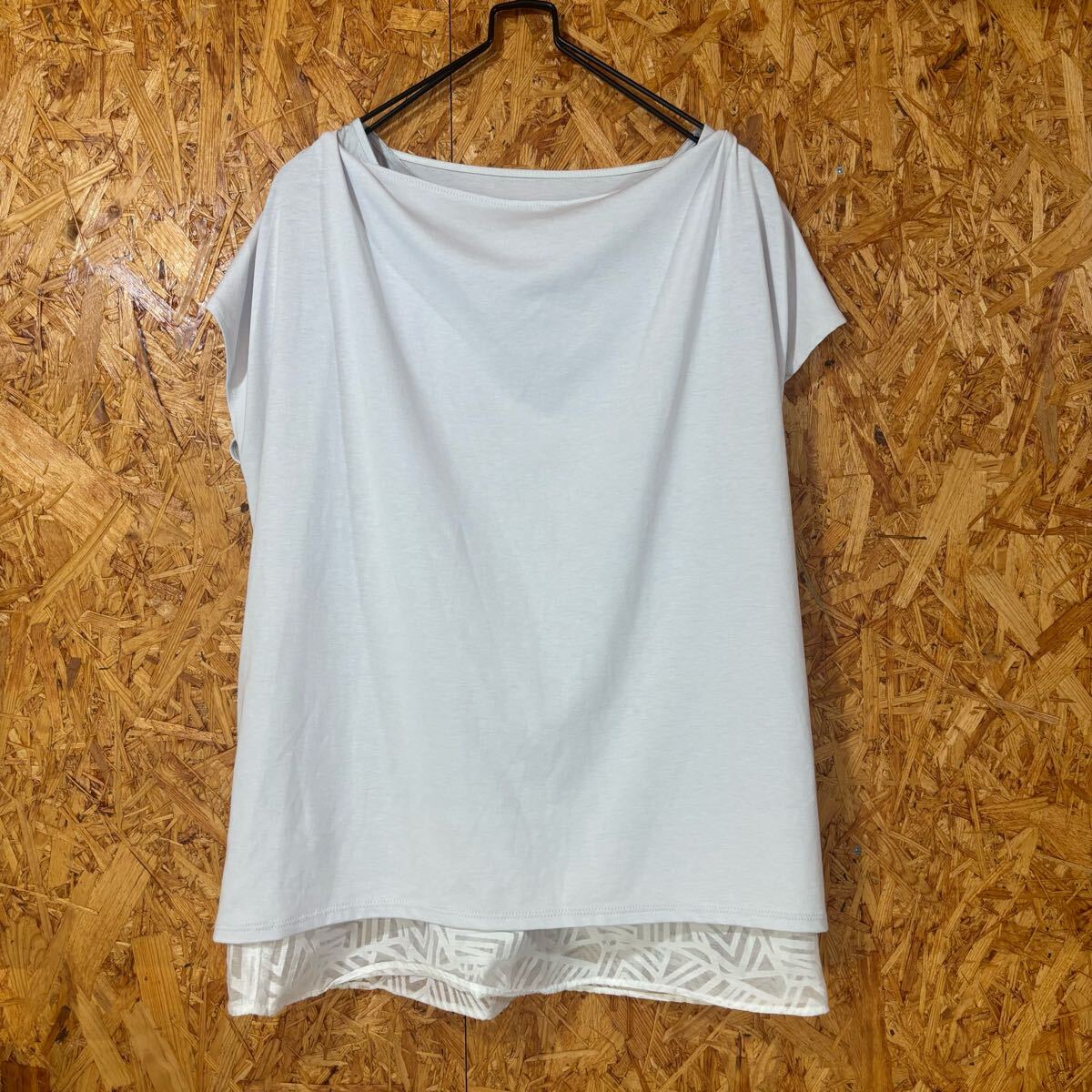 - 美品 CDEC カットソー 半袖カットソー タンクトップ付き 裾レース グレー レディース トップス 4715