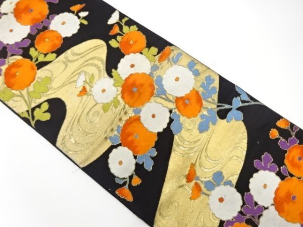 > ys7443231; 宗sou 流水に菊模様織り出し袋帯(材料)【アンティーク】【着】