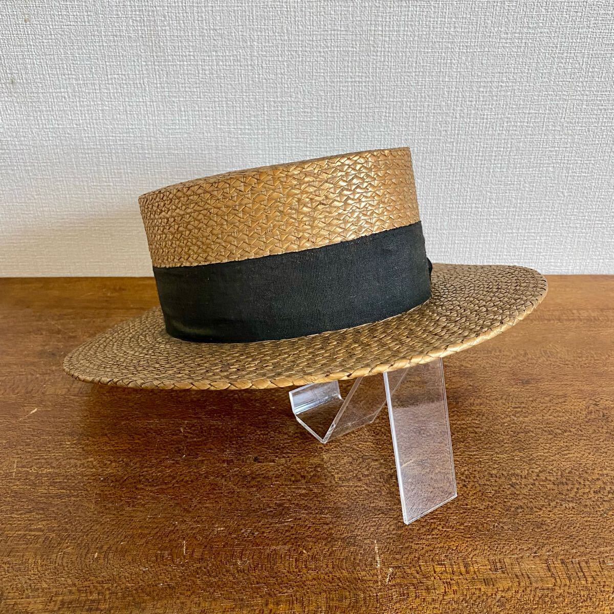 - アンティーク 古いカンカン帽 ストローハット 頭周り約57㎝ / 麦わら帽 帽子 大正ロマン 昭和初期 当時物
