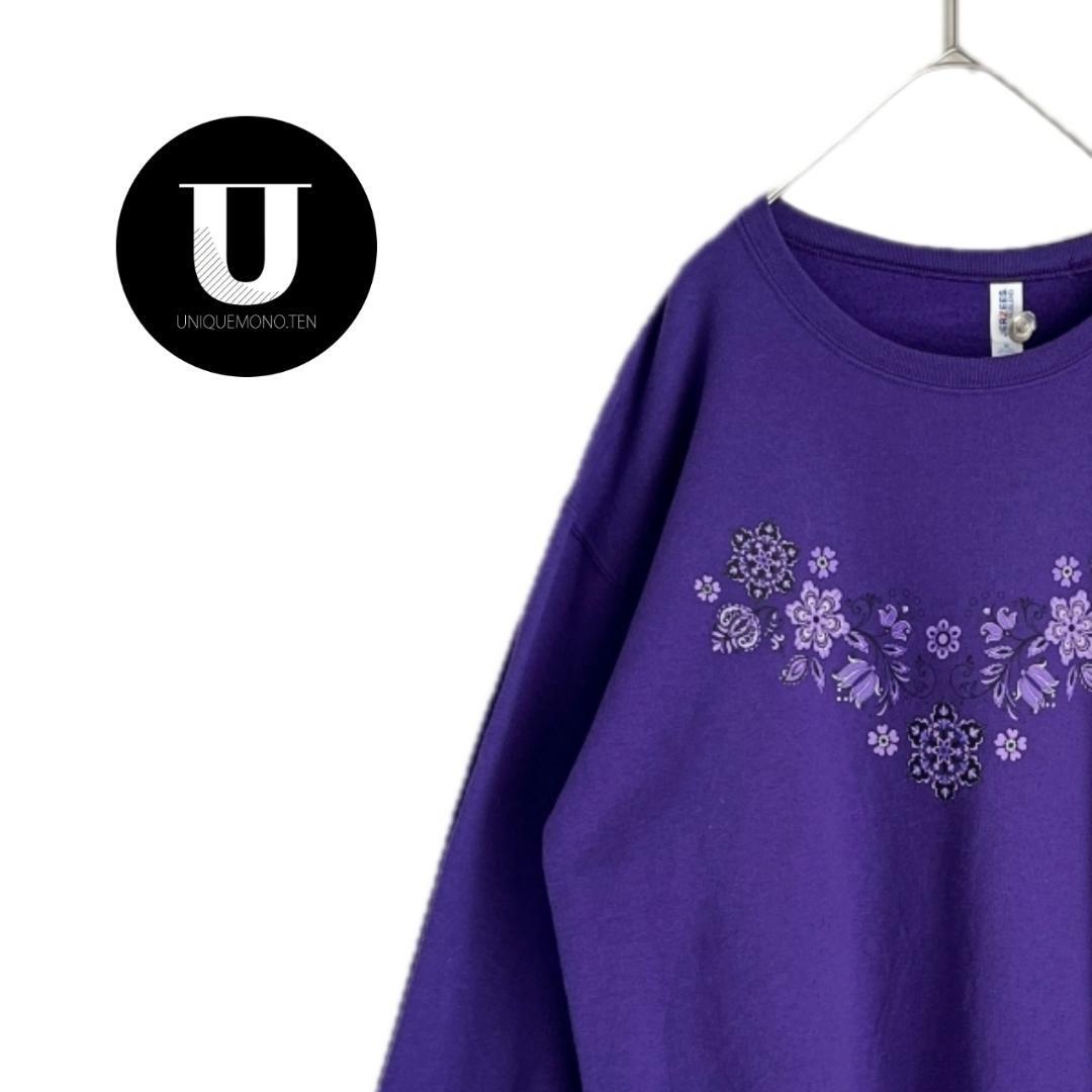 - \スウェット/パープル 花柄 古着 トレーナー プリント 長袖