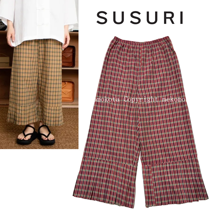 - 未使用に近い 超美品 2023SS ススリ マドラスチェック フルッターパンツ 2 ピンク ペチパンツ イージーパンツ SUSURI 23-507