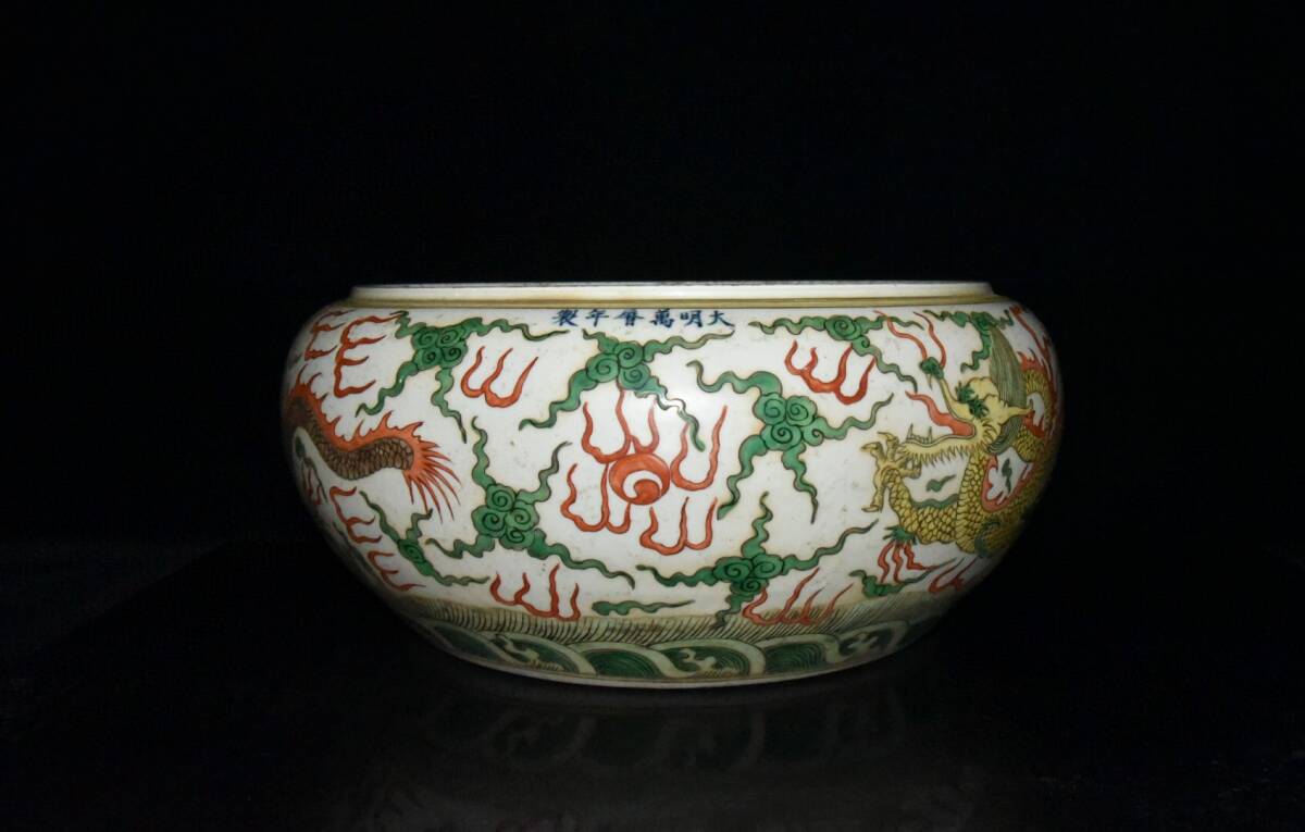 - 『館蔵珍品 明 萬暦年製款 古陶瓷品 五彩 龍紋 筆洗 陶藝』稀少珍蔵品 古賞物 貴重物品 収蔵品 中国古美術 時代物 古董品