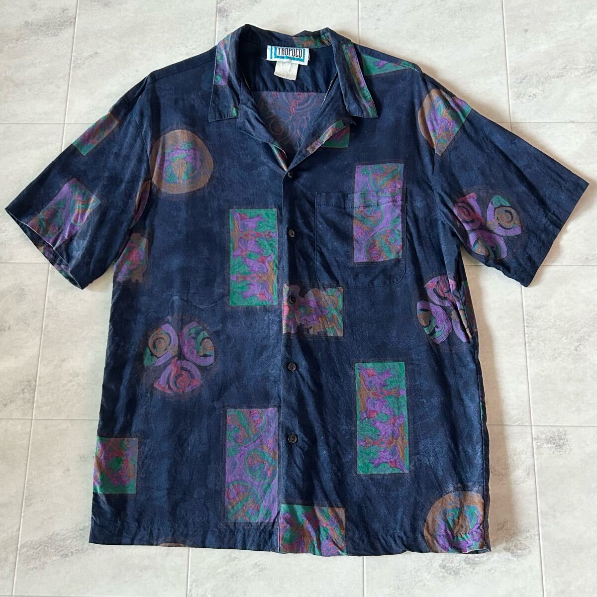 > 80s 90s USA製 TROPOCO HAWAII 開襟 オープンカラー レトロ アート ビンテージ アロハシャツ レーヨン100%