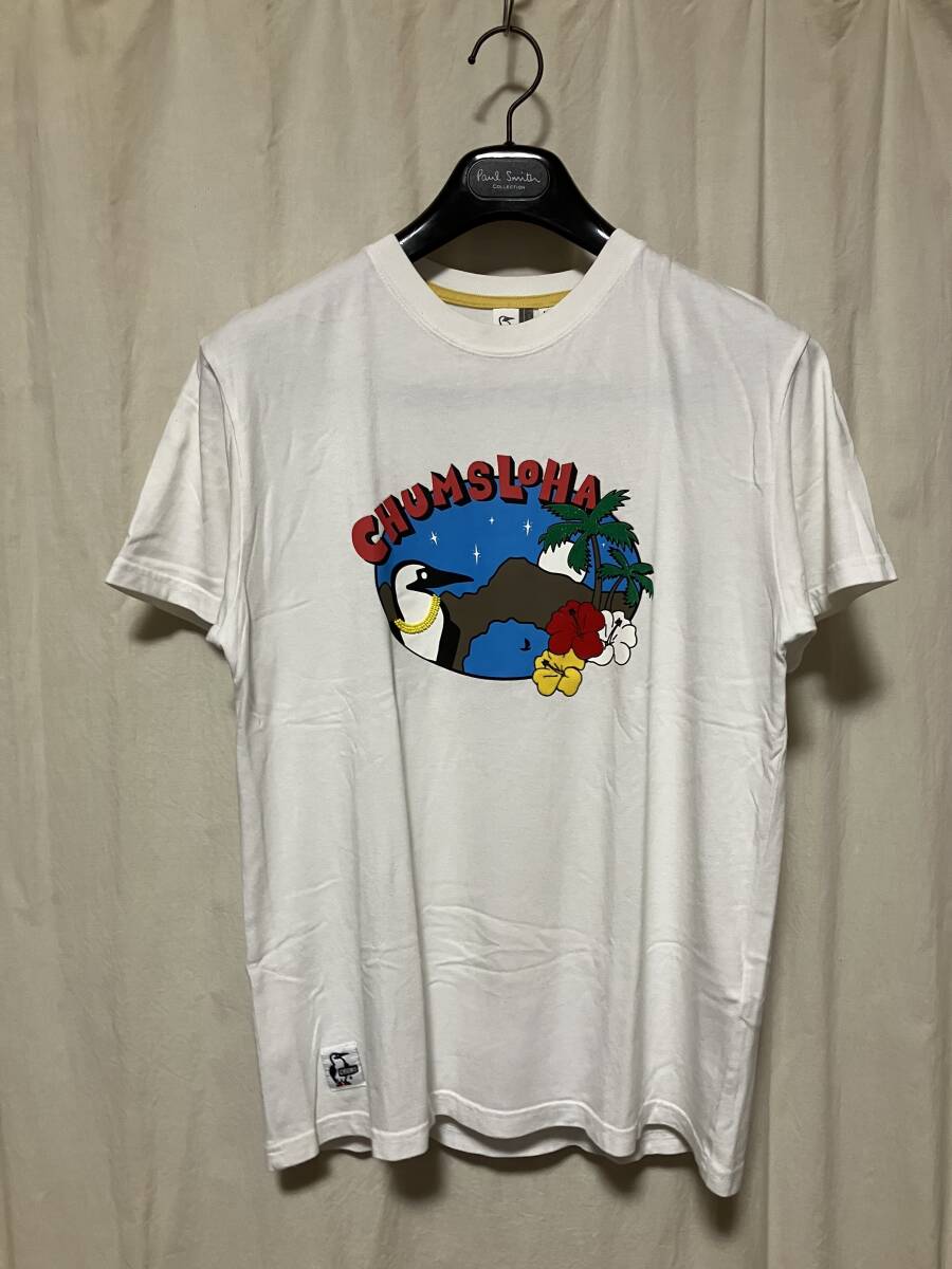 - CHUMS LOHA チャムス プリン/ビーズ使い 半袖Tシャツ 白/赤 M 中古品