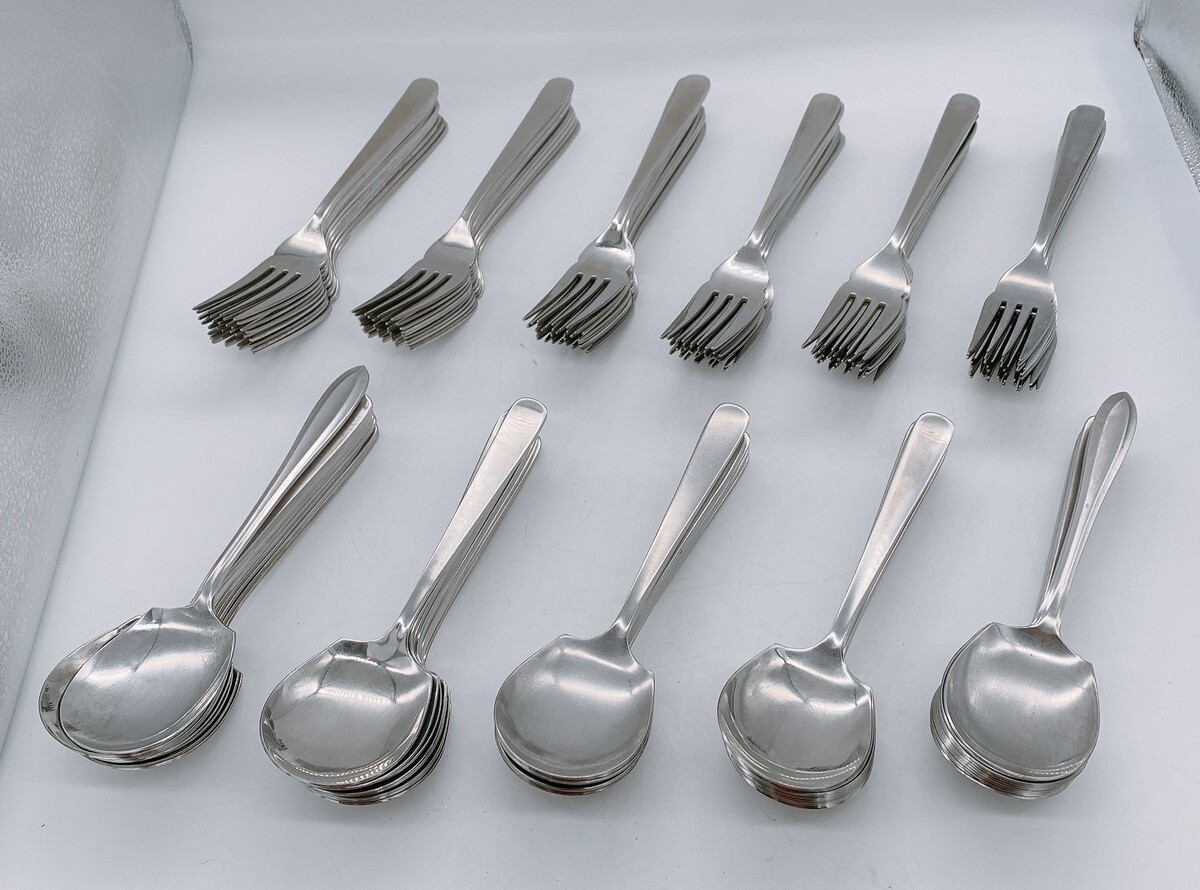 - 中古 ベルニナサービス スプーン フォーク 111本まとめて ステンレス製 食器 レストラン ホテル 店舗 業務 カトラリー 茨城 0710か3 C1 60
