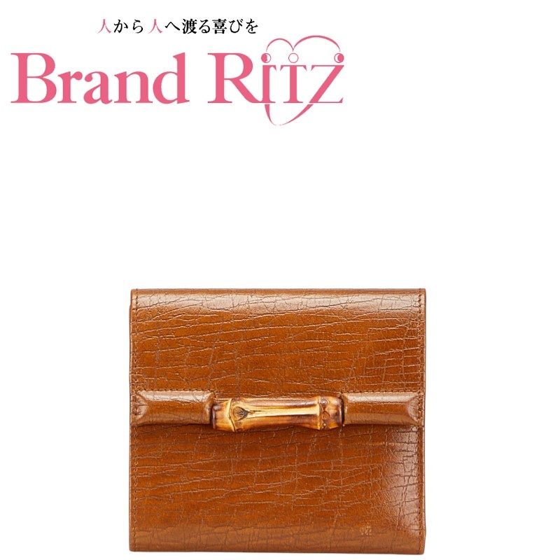 > 中古 グッチ 三つ折り財布 バンブー コンパクトウォレット 112536 ABランク ブラウン レザー 【送料無料】【西神店】